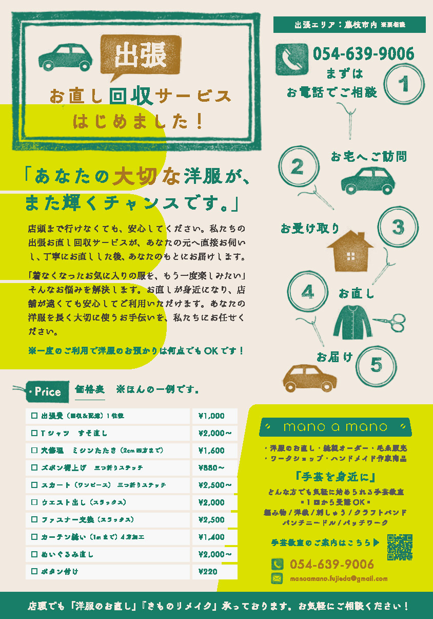 出張お直し回収サービスはじめました!(藤枝市内限定)